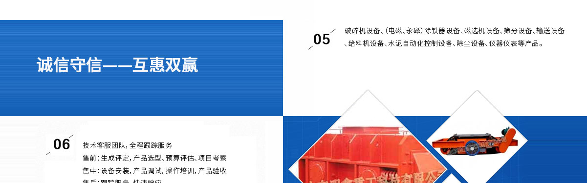 | 山東明鑫重工科技有限公司為是集科研開發(fā),設(shè)計(jì)制造、銷售、安裝、調(diào)試為一體的技術(shù)制造企業(yè)。公司位于美麗的****風(fēng)箏都-濰坊市(國(guó)家AAAA級(jí)森林公園-沂山景區(qū)駐地)臨朐東城工業(yè)園。本公司產(chǎn)品種類有:破碎機(jī)設(shè)備,(電磁、永磁)除鐵器設(shè)備,磁選機(jī)設(shè)備,篩分設(shè)備,輸送設(shè)備,給料機(jī)設(shè)備,水泥自動(dòng)化控制設(shè)備、除塵設(shè)備,儀器儀表等產(chǎn)品。其產(chǎn)品有五十多個(gè)系列,四百多種規(guī)格,并可根據(jù)客戶需求設(shè)計(jì)生產(chǎn)相應(yīng)的產(chǎn)品。其產(chǎn)品廣泛應(yīng)用于冶金、電力、煤炭、礦山、造紙、食品、化工建材、耐火材料、磚瓦、水泥、玻璃等行業(yè),產(chǎn)品暢銷國(guó)內(nèi)三十多個(gè)省市、自治區(qū)。 |